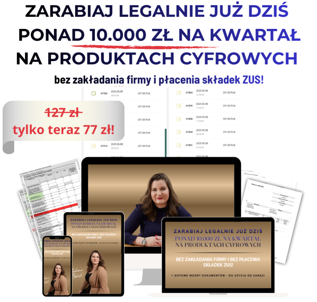 Sprzedaż produktów cyfrowych na działalności nierejestrowanej jest dziś najłatwiejszym sposobem na start, bo możesz zacząć zarabiać od razu, jeśli tylko znasz kilka prostych zasad.